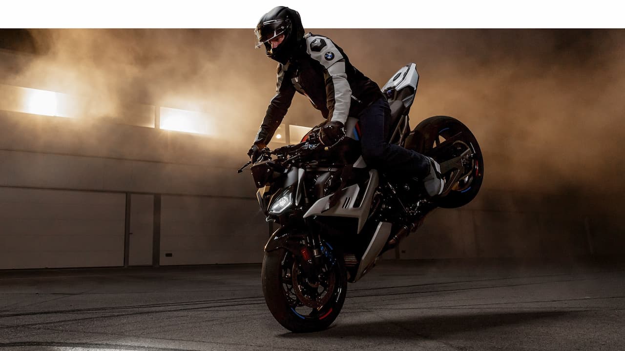 Repoussez vos limites : la M 1000 R. En abrégé M R. Quand la superbike rencontre le roadster dynamique. Ses gènes : une fusion entre la course automobile et la piste. 210 ch énergiques avec une vitesse de pointe de 280 km/h sous votre contrôle, sur une piste de course. Elle pardonne beaucoup de choses, mais jamais l’immobilisme.